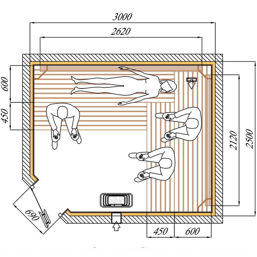 Фото: расчет высоты полоков в финской сауне и русской бане