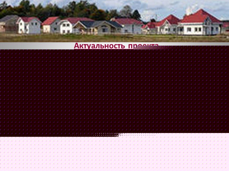 В Юрьянском районе Кировской области, в поселке Слободино реализуется проект по созданию и развитию индустриального парка. В процессе развития предполагается кластерное развитие и тиражирование производства в другие районы Кировской области – Советский, Малмыжский и др. Развитие предприятий индустриального парка потребует привлечения 300 – 400 человек сотрудников. С целью привлечения молодых специалистов и аккумуляции средств предприятий, целесообразно строить коттеджные поселки в непосредственной близости от производства. В Юрьянском районе будет закуплен земельный участок от 135 до 350 гектар. В Советском районе заключен договор аренды на 17 гектар земли. В Малмыжском районе имеется 80 гектар земли в собственности. Планируется приобретение земельных участков общей площадью до 1000 гектар. На закупленных участках будет произведено межевание и осуществлено строительство коттеджей площадью м 2 под ключ. Загородные дома полностью отвечающие современным требованиям, расположенные в красивой местности, в непосредственной близости от места работы это не только возможность переехать жить за город, но и гарантированная инвестиция. Партнером проекта является строительная компания «Стройся Вятка». Актуальность проекта