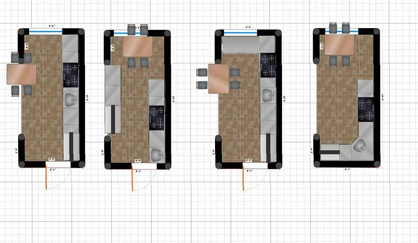 На данный момент можно выделить шесть основных вариантов планировок кухни: