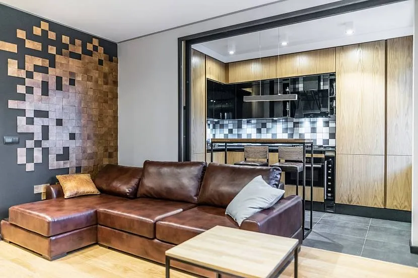 Чаще всего из 40 квадратных метров сооружают кухню-зал. Такой подход подразумевает деление комнаты на две неравные зоны: обеденную и гостевую, при этом вариантов такой комбинации очень много.