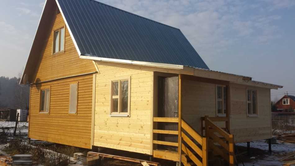 В отличие от описанного выше, этот вид строений можно ставить, как конструктор: собрав одну наружную стену, мастера переходят к другой, и так до завершения всей коробки. Несомненным плюсом является быстрота монтажа. В пользу каркасных домов говорит и наличие утепляющего слоя в СИП-панели. В качестве основания под сборный дачный домик 6х6 возводится упоминавшийся выше ленточный фундамент. Остается отметить, что все работы сможет выполнить практически любой домашний умелец, имеющий навыки обращения с молотком, дрелью и пилой.