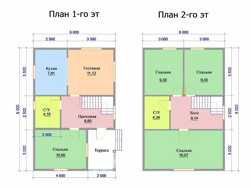 Планировки домов 6 на 9 – одноэтажные, с мансардой, двухэтажные