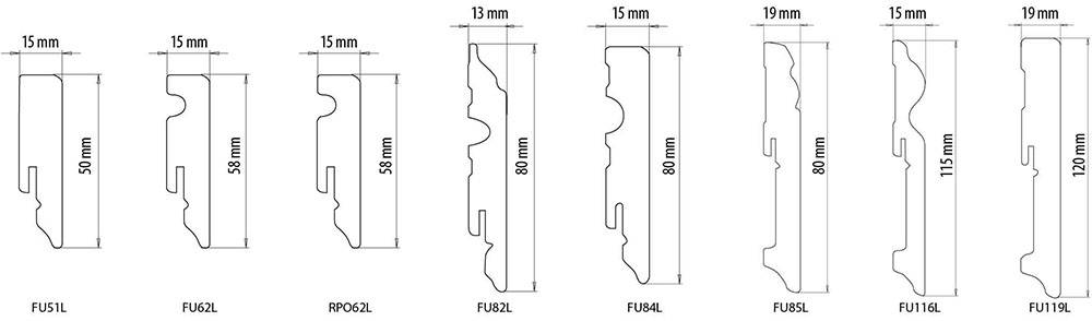 Размеры выпускаемых профилей варьируются в широком диапазоне. Их ширина может составлять 40-150 мм при толщине 10-38 мм и длине планок 2-2,5 м.