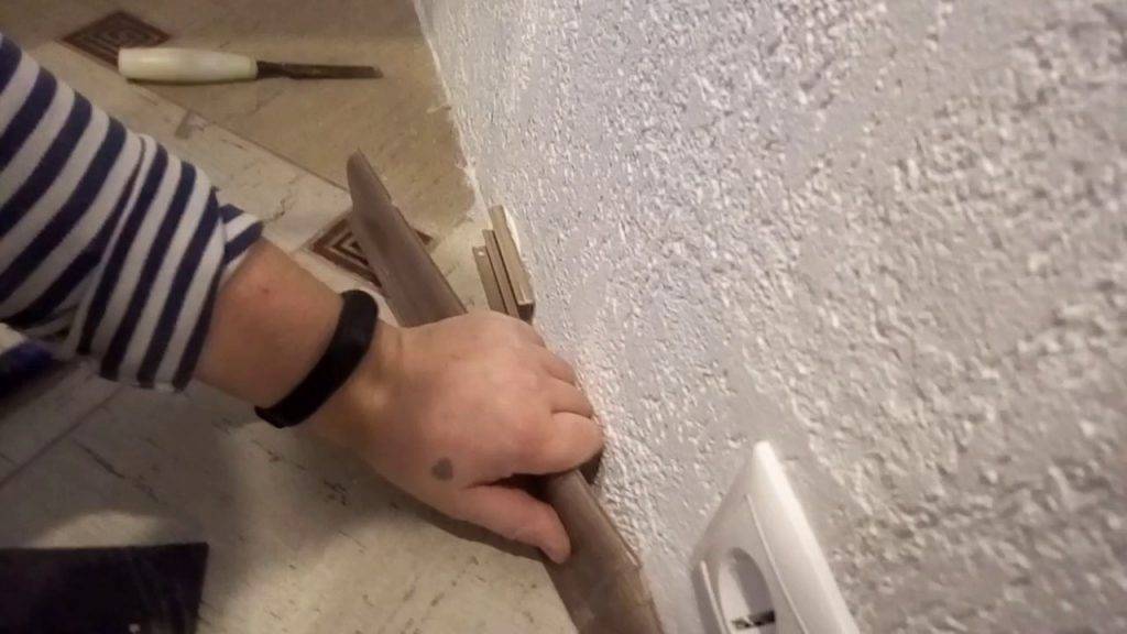 Для того чтобы ровно подрезать плинтуса в углах, их первым делом необходимо примерить на полу.