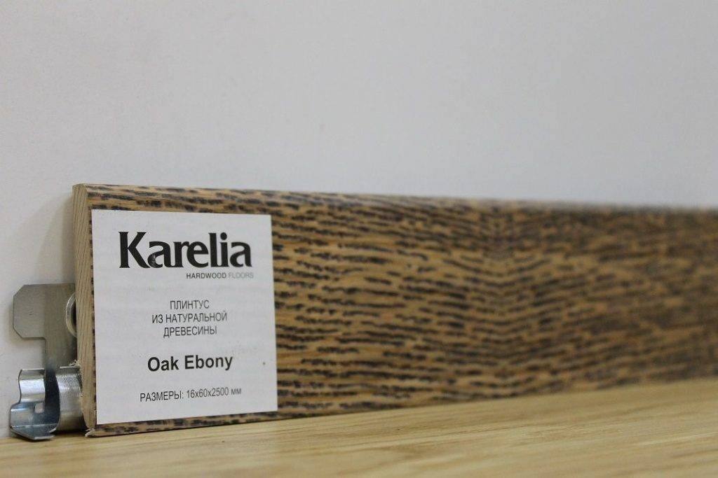 Ширина (высота) плинтуса из массива дуба зависит от габаритов помещения: чем потолок выше, тем шире плинтус.Однако при установке плинтуса больших размеров, не следует крепить с помощью клипс или «садить» на жидкие гвозди.