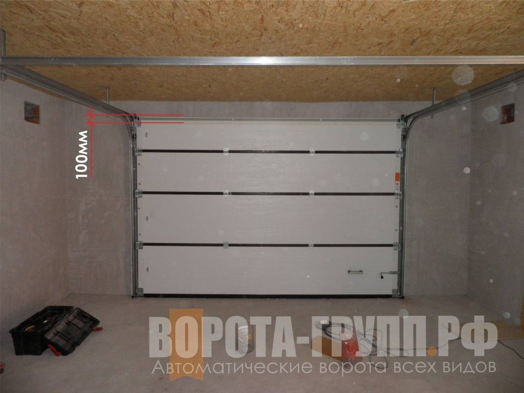 Для небольших бытовых гаражных ворот площадью до 8м2 устанавливаются пружины растяжения. Высота притолоки должна быть не меньше 100мм (для ручного подъема) и 125мм для ворот с приводом. Это в теории. А на практике, что бы не вылавливать миллиметры, делайте 150мм.