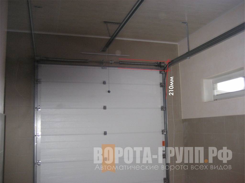 Для изделий площадью более 8м2 и для ворот со встроенной калиткой минимальный размер перемычки должен быть не менее 210 мм.