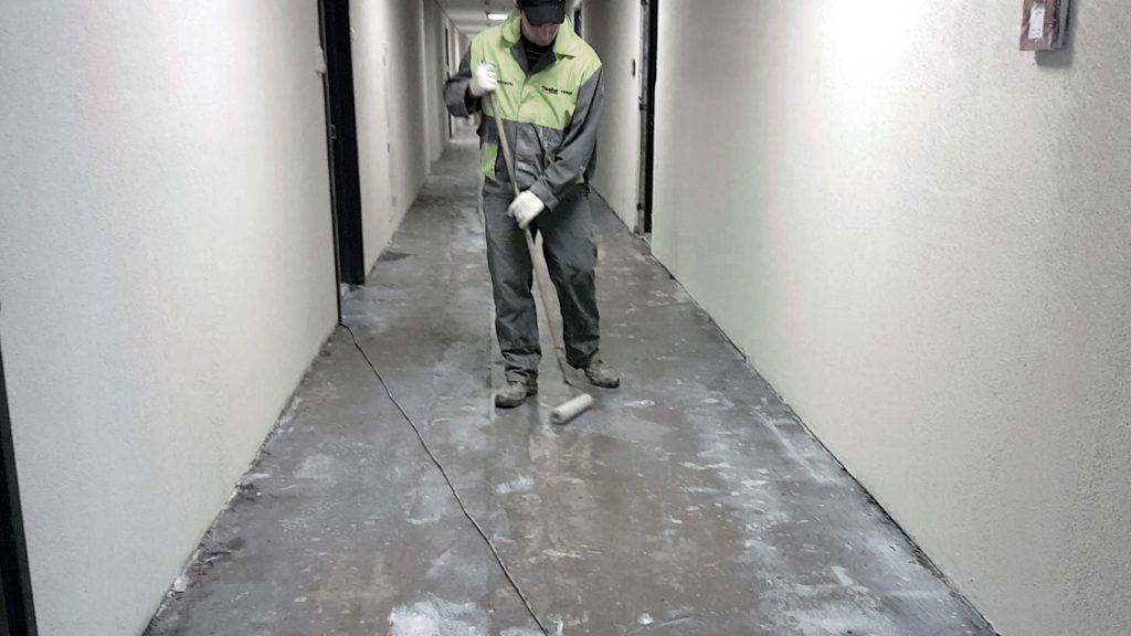 Обратите внимание, что гидроизоляционный состав следует наносить на сухую поверхность. Поэтому перед проведением этого этапа дождитесь полного высыхания грунтовки
