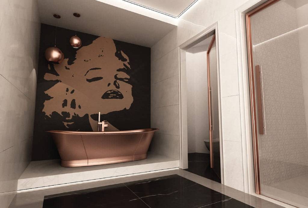 Установка ванны | Важный критерий при выборе – вес устройства. Легкие ванны – из акрила, около 30 кг. Самые долговечные чугунные – самые тяжелые. В большом помещении ее располагают посредине, коммуникации проводят под полом, для этого оставляют примерно 100 см пространства. Вешалки и полотенцесушитель располагают на 60 см от ванны |