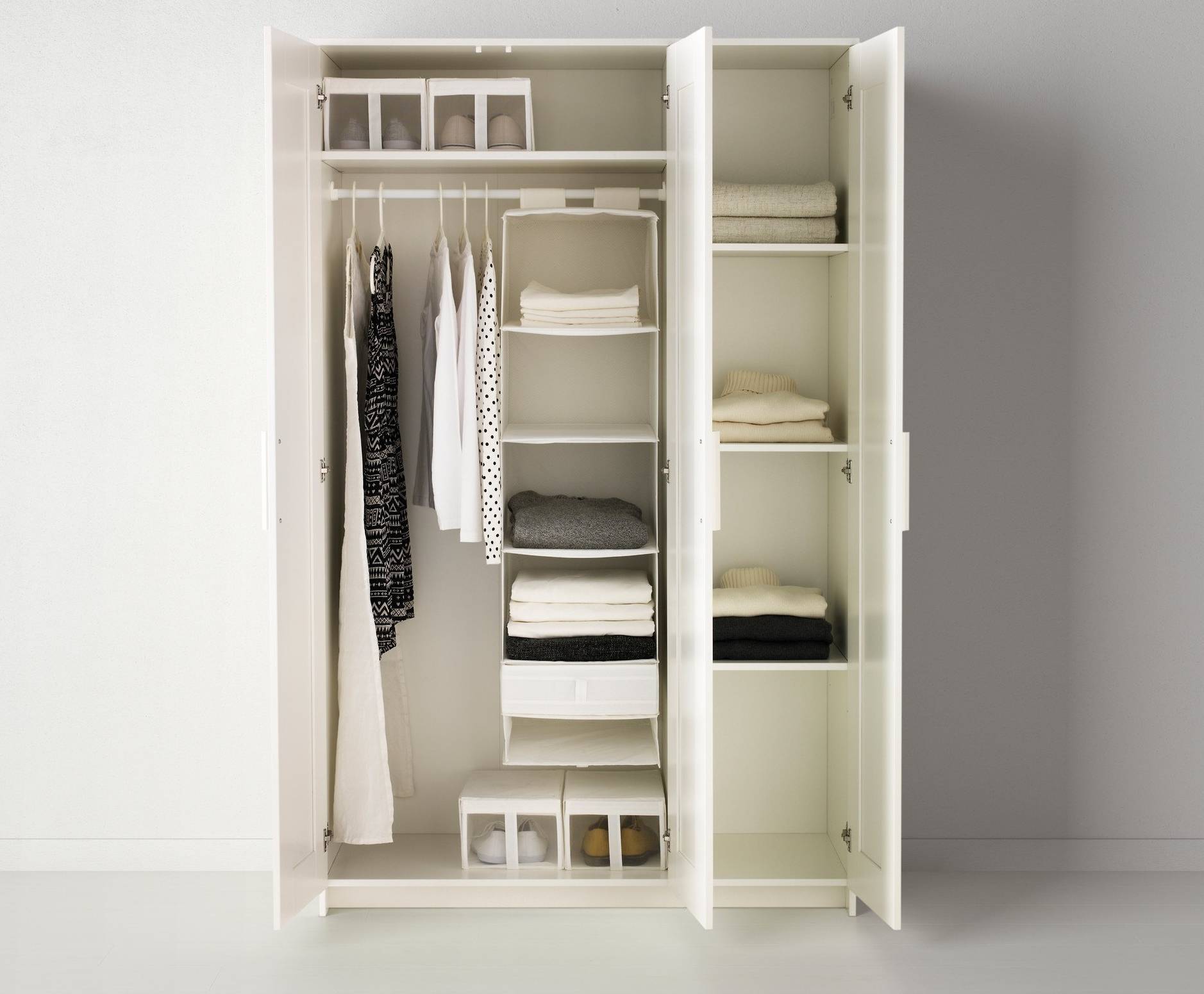 Условно внутреннее наполнение любого распашного шкафа можно разделить на 3 части: