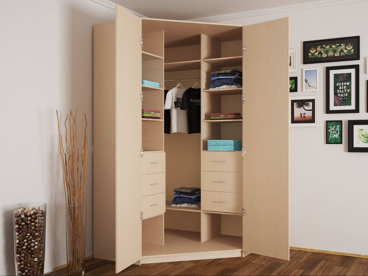 Существуют разные варианты распашных шкафов:
