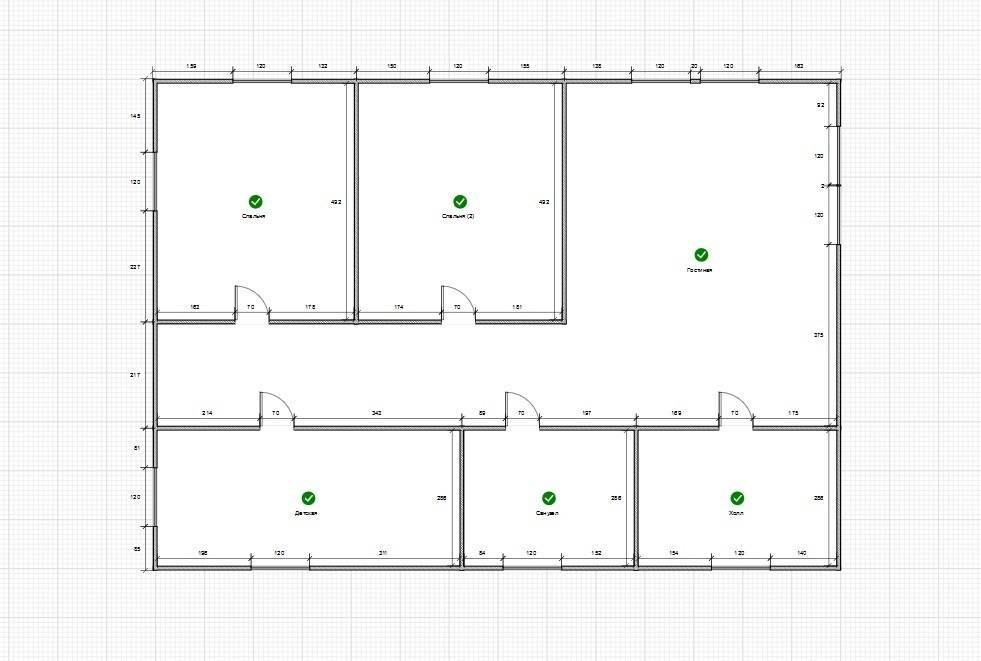 Наш вариант 100, поэтому мы нарисовали периметр 14 на 10. Сложив все четыре стороны, получаем общий периметр здания 48 метров. При стандартной ширине фундамента в 0,5 метра это минус к итогу 24 квадратных метра. Остальные 16 из добавленных квадратов у нас тоже быстро разойдутся. Во-первых, нужна по диагонали хотя бы одна несущая стена с толщиной фасадного фундамента. Это отнимает у нас еще 7 квадратов. Во-вторых, нельзя забывать про межкомнатные стены, перегородки у санузлов, кухни, кладовки, прихожей. На это мы потратим оставшиеся 9 метров площади.