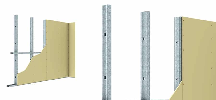 Для возведения каркаса используют профиль стоечного формата. Он подходит для возведения стен, которые выполняют чисто декоративные функции, если выбирать 50 мм металлическую рейку. Для более серьезных построек подходит каркас из профиля 100.