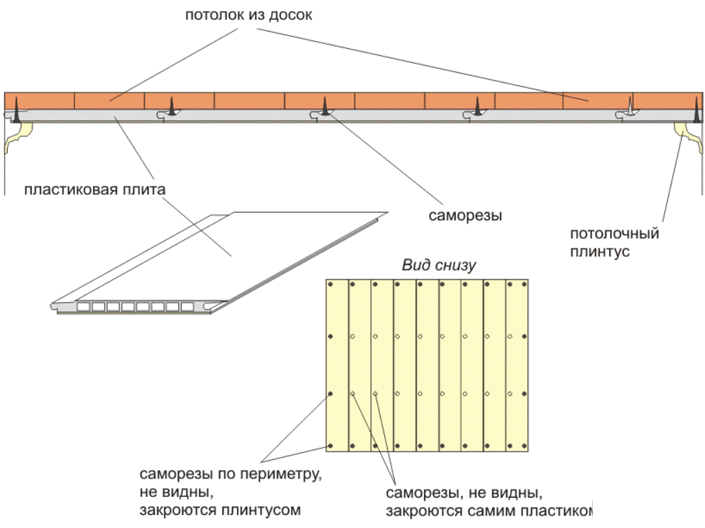 Потолок из пластиковых панелей в ванной комнате, туалете и кухне