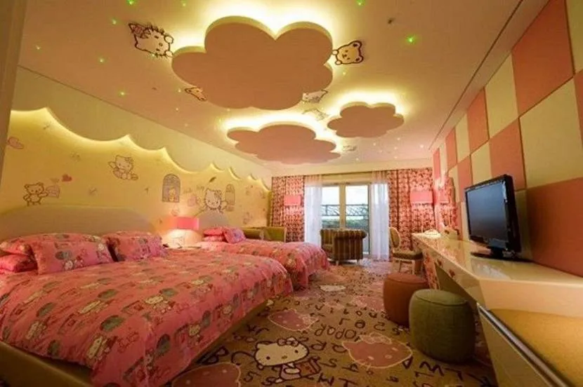 - После монтажа поверхность дополнительно выравнивают шпатлевкой и красят в любой цвет. В дальнейшем потолок можно перекрасить в другой оттенок, что позволяет без особых затрат преобразить комнату (особенно, если дополнительно заменить, например, текстиль).
