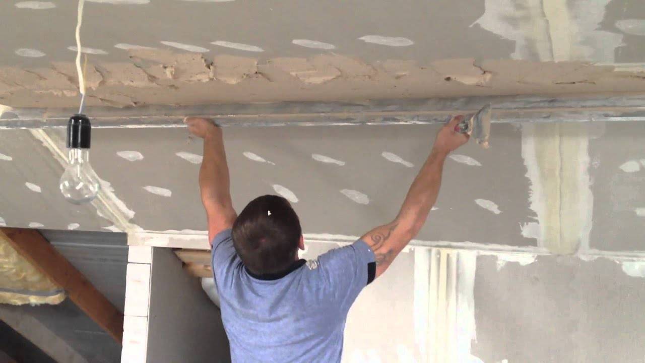 Особые проблемы может вызвать штукатурка потолка из гипсокартона своими руками. Сложности возникают именно из-за того, что неудобно проводить обработку ГКЛ на потолке, ведь нужно постоянно стоять на стремянке с поднятыми над головой руками.