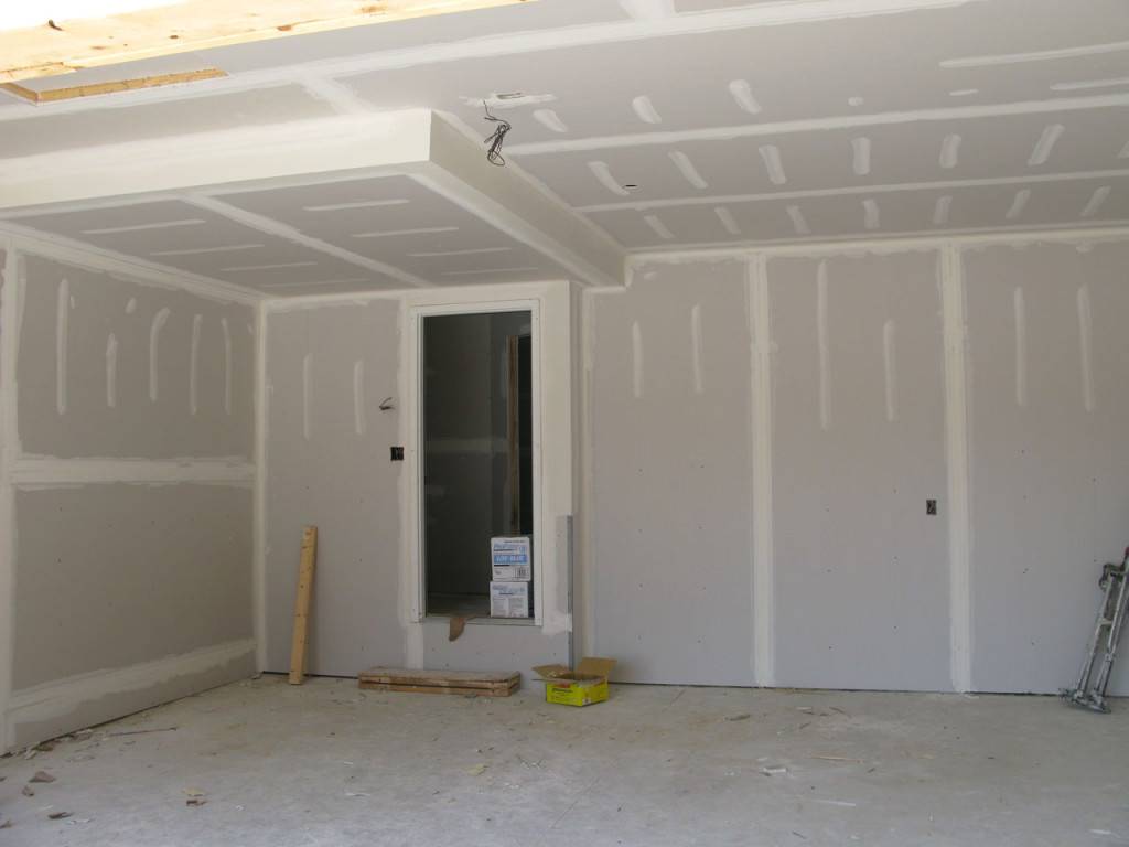 Гипсокартон представляет собой готовые листы «сухой штукатурки» размером 120 на 250 см (выпускаются листы и других размеров). Эти листы точечно приклеиваются к поверхности выравниваемой стены специальным монтажным клеем на основе гипса либо прикручиваются саморезами к каркасу. Для получения гладкой поверхности нужно заделать стыки листов, сплошное шпаклевание необязательно. Каждый целый лист выравнивает сразу 3 кв. метра площади стены.