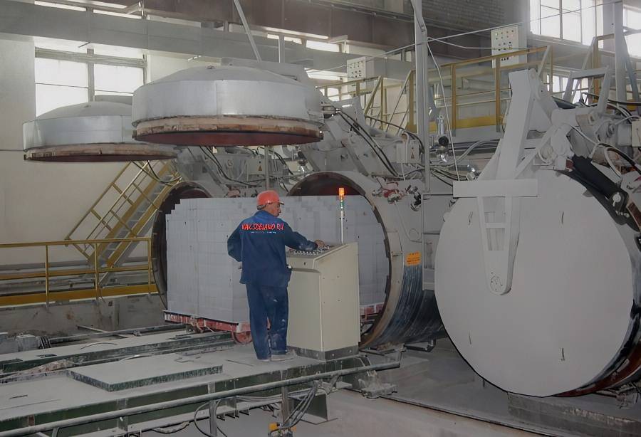 Силикатные кирпичи поступают в автоклав, где обрабатываются паром при высоком давлении