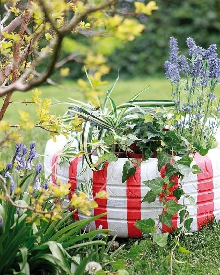 Если подойти к вопросу оформления клумбы творчески, то получится модный ландшафтный дизайн. В последнее время особенно популярны решения, сделанные на основе вышедших из употребления предметов.