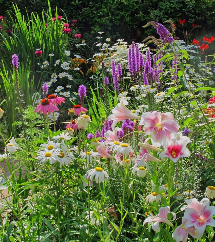 Красивая высокая клумба с многолетниками разной высотыИсточник vsaunu777.ru
