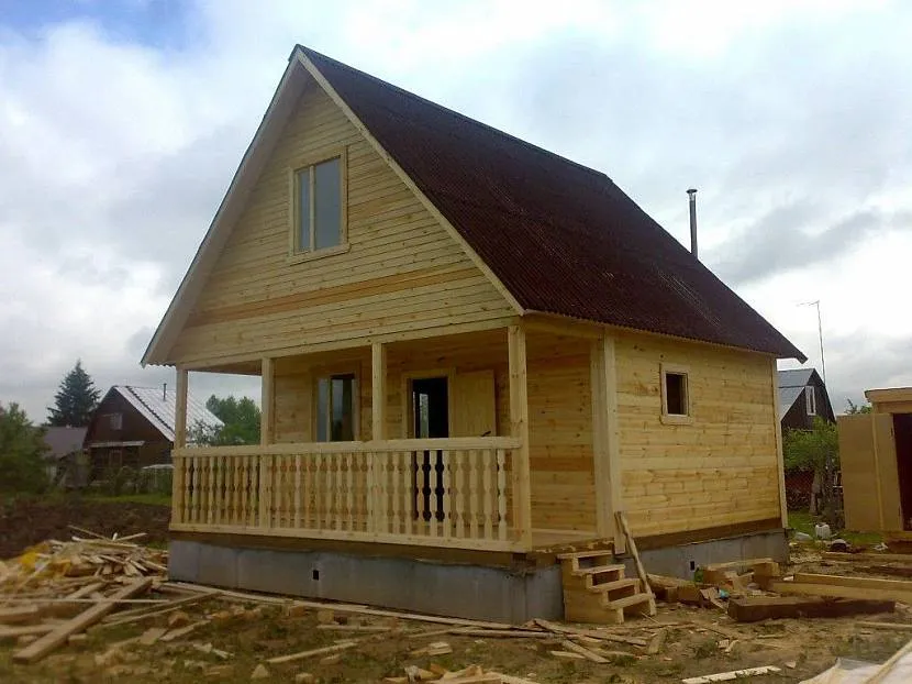 Экономия получается также на заливке фундамента. Для построек не требуется много кубометров бетона. В основном хватает залитой площадки. Перед главным входом может располагаться терраса, а на верхнем этаже балкон. Беседки возле постройки не нужны. Утепление мансарды новыми материалами происходит быстро, не требует больших финансовых вложений, но позволяет обеспечить круглогодичное проживание.