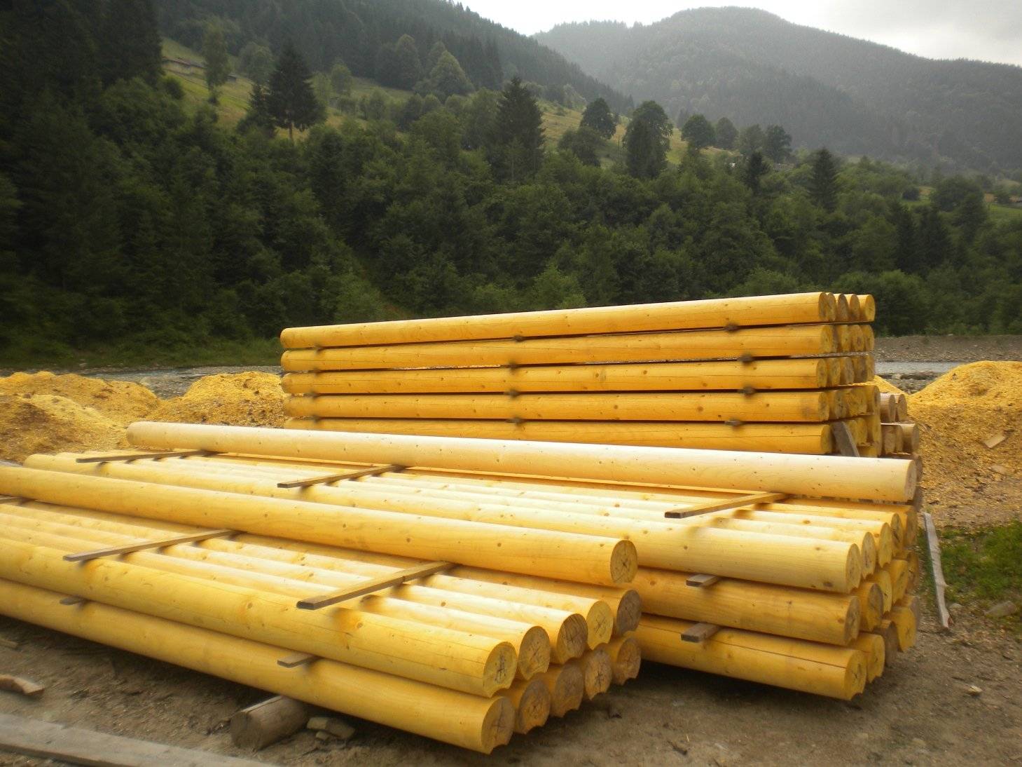 Кругляк должен быть отшлифован и пропитан влагостойким составом. Доставку производят в кубах, поэтому нужно заранее просчитать, сколько сырья понадобится для работы.