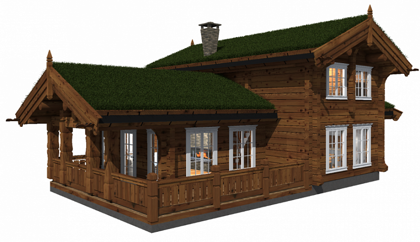 Частный дом ценится в первую очередь своей функциональностью и уникальностью проекта. Этим требованиям отвечает следующий проект. Классическая норвежская технология строительства двухэтажного дома из лафета позволила на площади в 133 м2 разместить три спальни, кабинет, два санитарных помещения, технические службы, кухню, столовую, гостиную. В дополнение имеется просторный холл, переходящий в уютную веранду. А дополнительный отдельный вход делает внутренние помещения более функциональными. Дом находится в ценовом сегменте от 1 005 400 рублей.