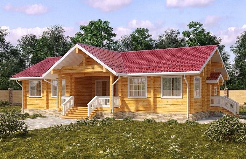 Одноэтажный дом заинтересует тех, кто круглый год живет за городом. Просторная терраса (веранда) специально спроектирована так, чтобы соединить пространство дома и окружающего ландшафта. В просторном доме площадью 121 м2 будут себя уютно чувствовать и хозяева, и гости. Кроме стандартных технических помещений, предусмотрено оборудование гардеробной комнаты, второго санузла, тамбура, соединяющего веранду и холл, дополнительного входа. Цена такого дома начинается от 1 112 000 рублей.