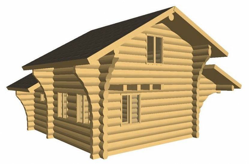 Баня сложной конструкции из лафетного бруса с мансардным этажомИсточник spb.lesstroy.net