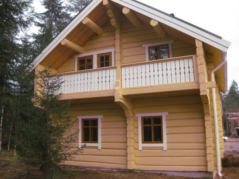 Коттедж из лафета с верандой и балконом имеет все необходимое для комфортного проживанияИсточник lestnitsygid.ru