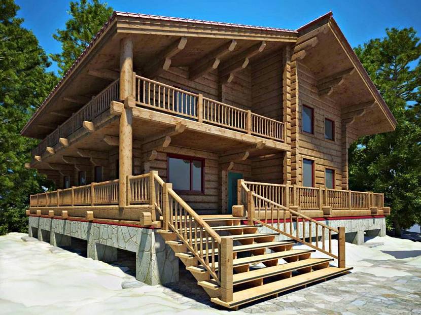 Норвежская технология не предполагает строительство домов из лафета в три и более этажей. Обычно это одно-двухэтажные строения, с террасой и балконами, с различной формой крыши и типом кровли. Фундамент выбирается по типу грунта, рельефу местности.