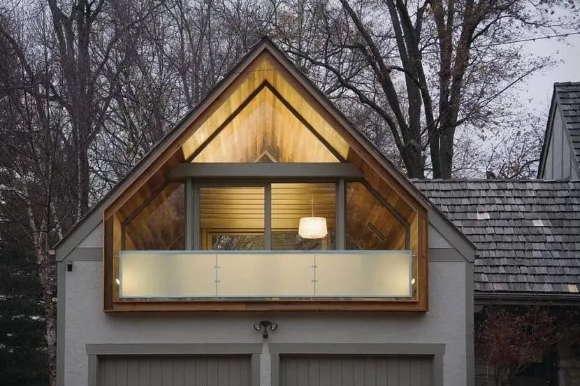 Чаще всего такой конструкцией оборудуют дачный дом. Но иногда этот вариант используется и в жилых загородных зданиях. Дом с мансардой и с таким окном выглядит очень красиво и современно.