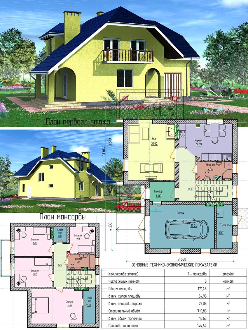 — удобство при пользовании гаражом. В доме с гаражом и мансардой, попасть в гараж не представит особого труда, при этом необходимости выходить на улицу нет. Это становится особенно актуальным в плохую и ненастную погоду.