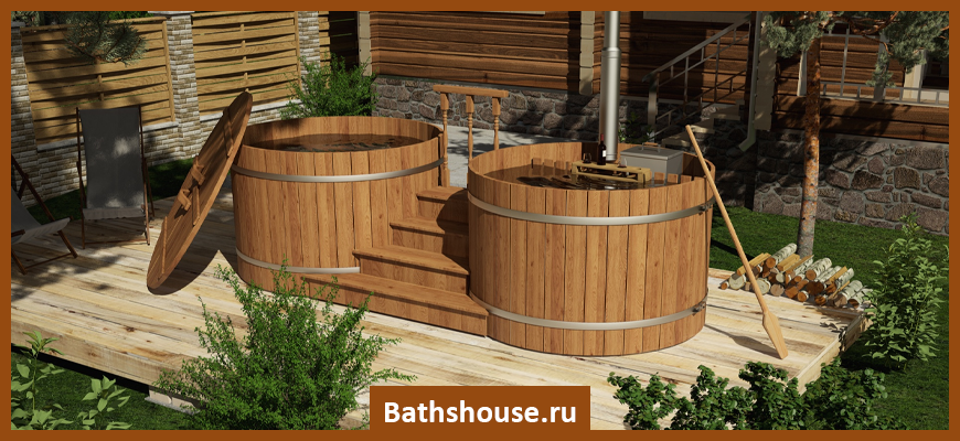 Представляет собой деревянную бочку, которую устанавливают на открытом воздухе. По форме бочка может быть круглой или овальной. Нагрев воды происходит при помощи специально оборудованной печи. Внутри всё оборудовано с максимальной безопасностью. Печь разделена с зоной релаксации специальной перегородкой. По периметру установлены скамьи, где можно удобно расположиться. Это своеобразная купель, где нагрев воды происходит равномерно и постепенно. Соорудить своими руками такую конструкцию несложно, но можно приобрести уже готовую.