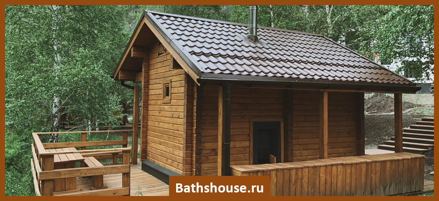 Представляет собой сооружение, которое можно переместить, то есть предусмотрено наличие колёс, либо возводится на столбчатом или ленточном фундаменте. Это небольшое помещение, примерно 9 кв. метров, где оборудована только парная. Здесь нет предбанника или ниши для переодевания. Печь электрическая либо топка находится снаружи. Самостоятельно эту конструкцию сооружают из тщательно высушенной древесины. Каркас обшивают досками или ОСП. Поверхность необходимо обязательно обработать антисептиками и противопожарными средствами. Крышу делают односкатную и покрывают мягким влагостойким материалом.