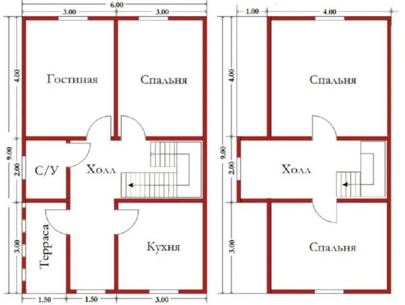 планировка двухэтажного дома 6х9