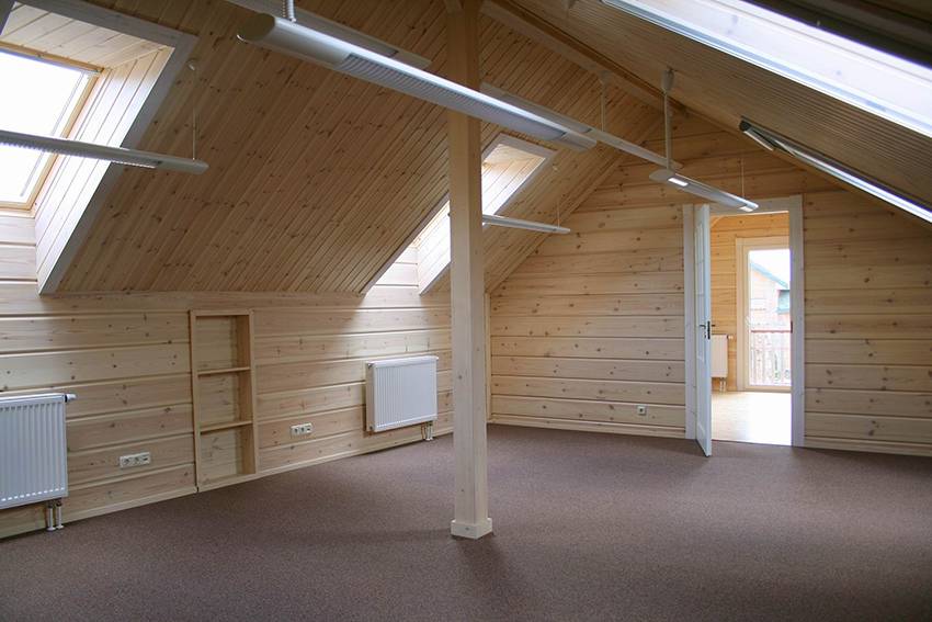 - Затем поверх утеплителя положите черновой деревянный пол и вразбежку закройте его листами фанеры.
