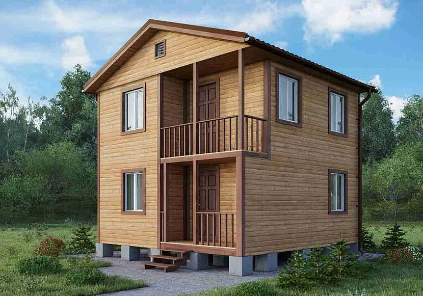 каркасный дом 6на6 Двухэтажный каркасный дом 6х6 с балкономИсточник himcomp.ru