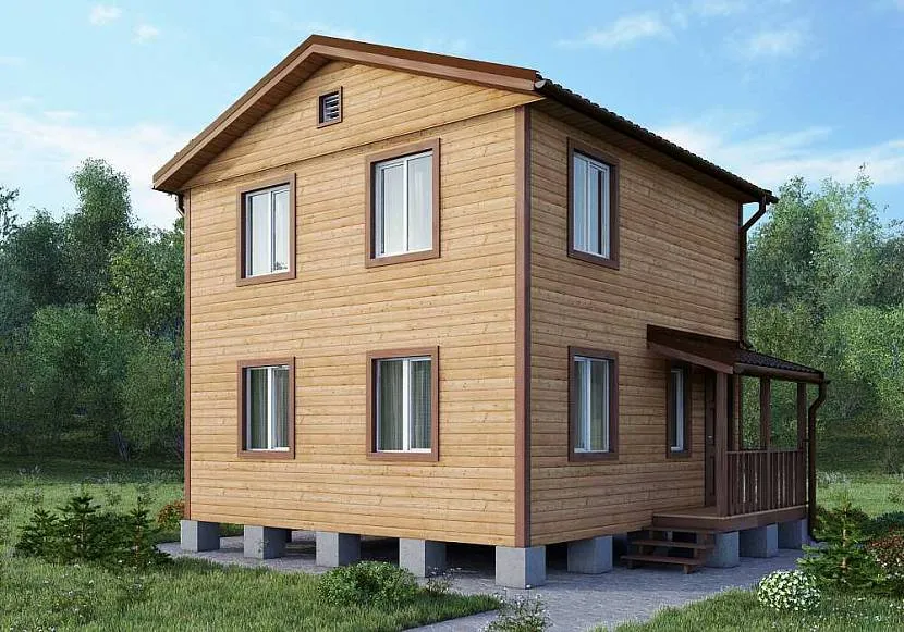 Двухэтажный каркасный дом 6х6 с маленьким крыльцомИсточник himcomp.ru