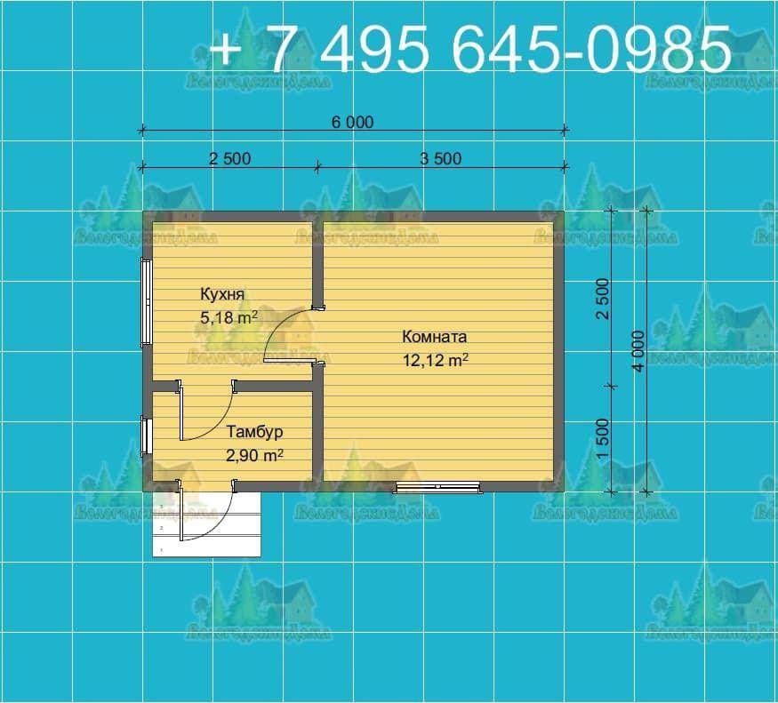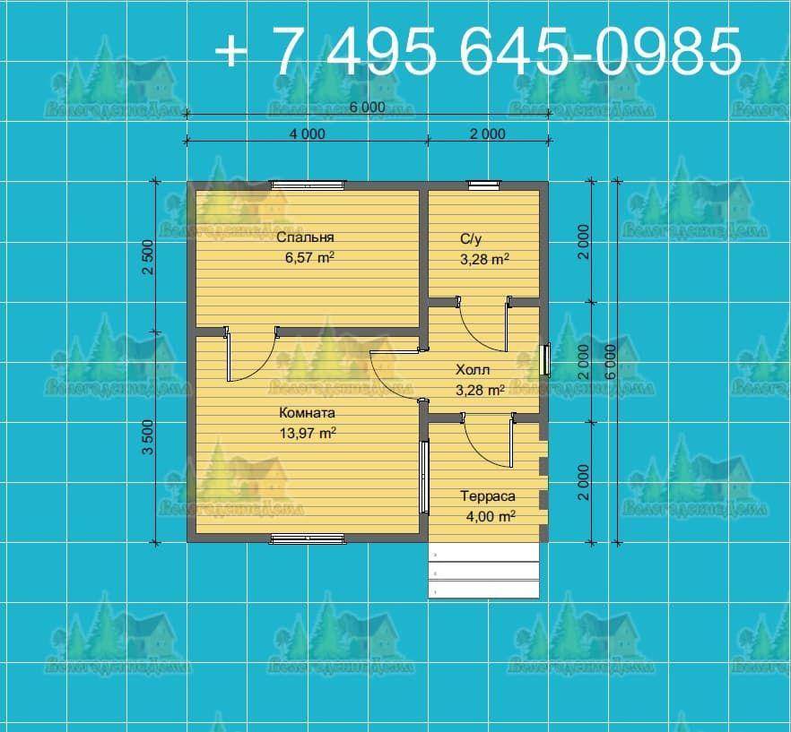 Одноэтажный каркасный дом 6х6 для круглогодичного проживания