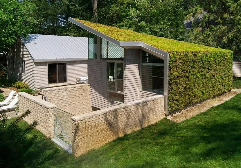 Загородный дом с зеленой крышейИсточник pinterest.ru