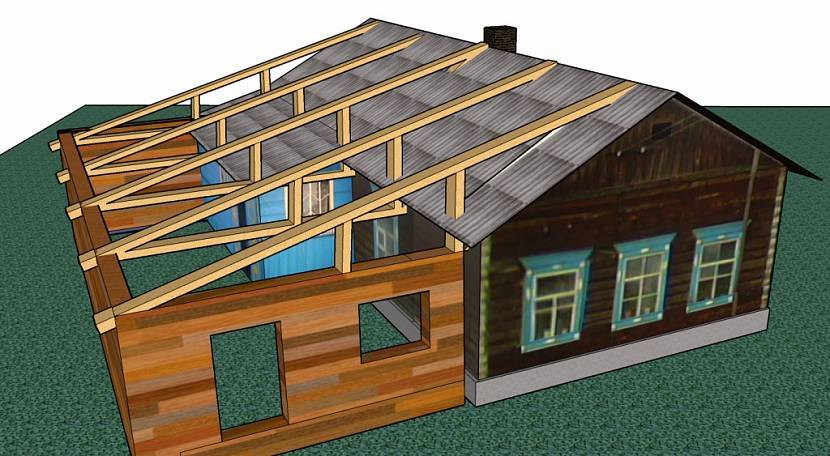 При использовании второго варианта, баня пристраиваются к дому в виде дополнительного помещения. Баня может стоять вплотную к дому или между ними делается какое-то подобие тамбура, но в любом случае и дом и баня накрываются одной крышей.