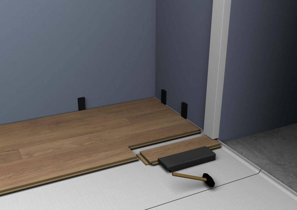 - Сверху размещается подложка, на которую мастер будет укладывать ламинат.