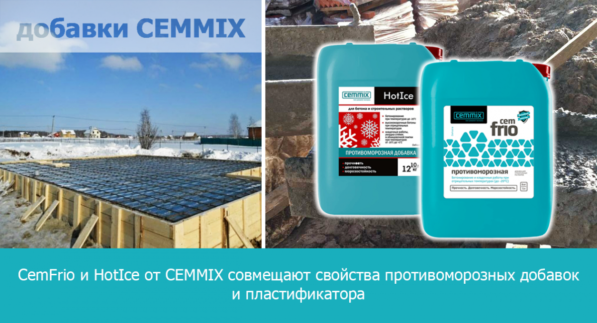 Противоморозные добавкичасто сочетают в себе свойства пластификаторов и ускорителей твердения бетона. Они позволяют: