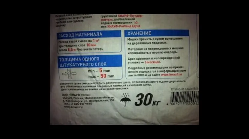 Если говорить о расходе штукатурки, то здесь все еще проще. На упаковках большинства штукатурных смесей указана информация о расходе материала при толщине в 1 см.