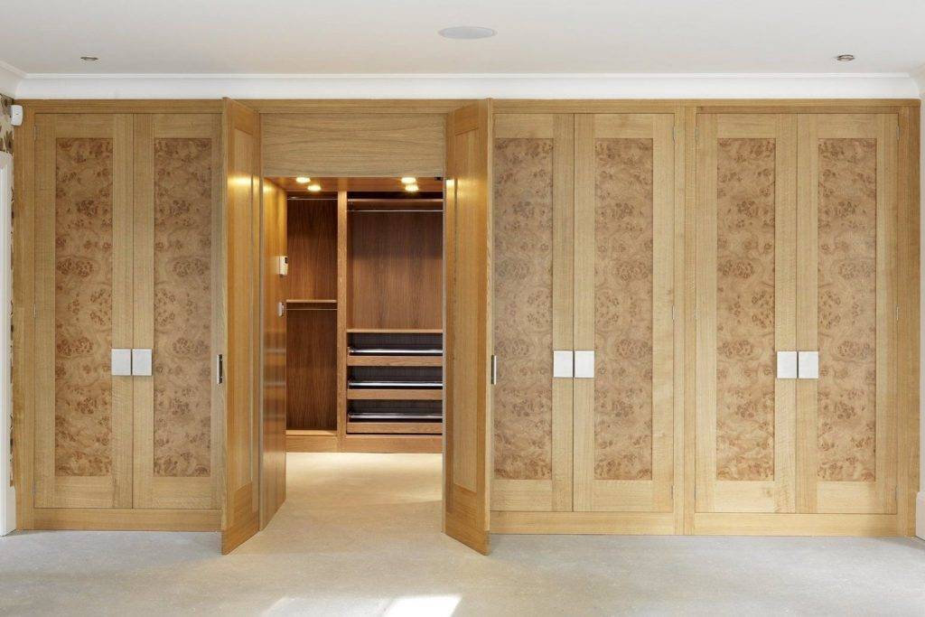 Существует несколько вариантов конструкции и оформления дверей для гардеробной: