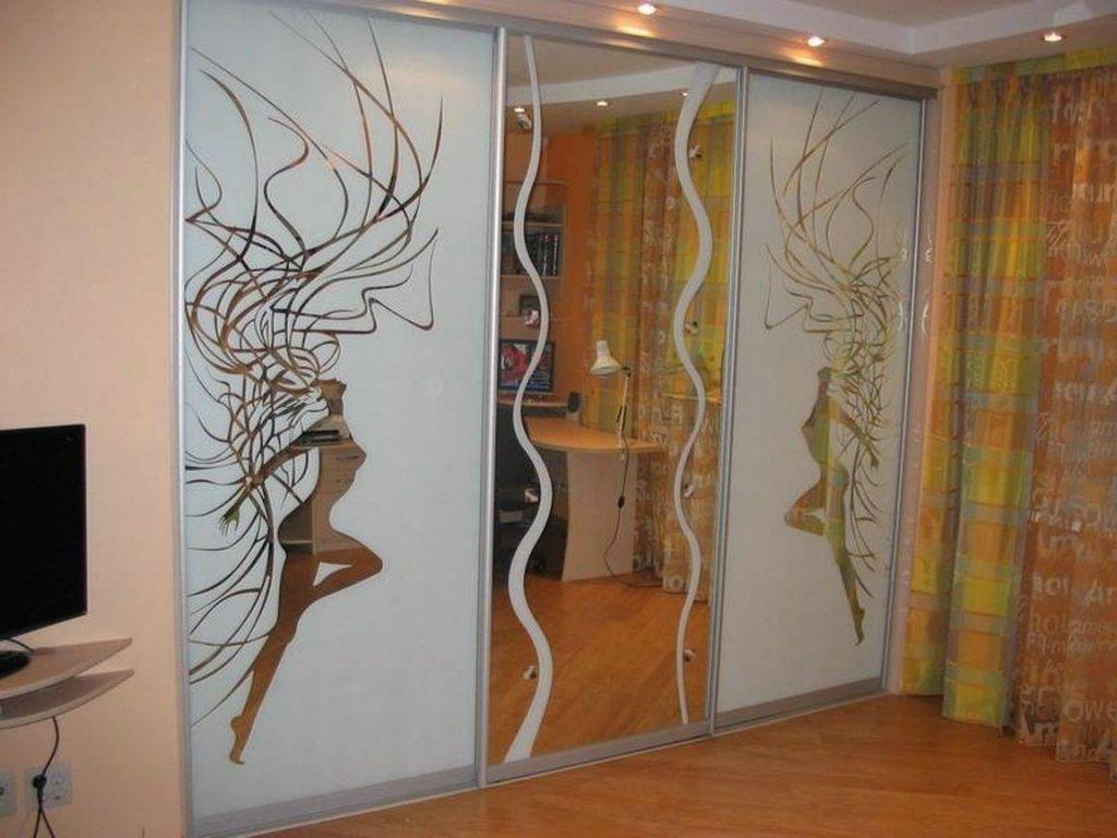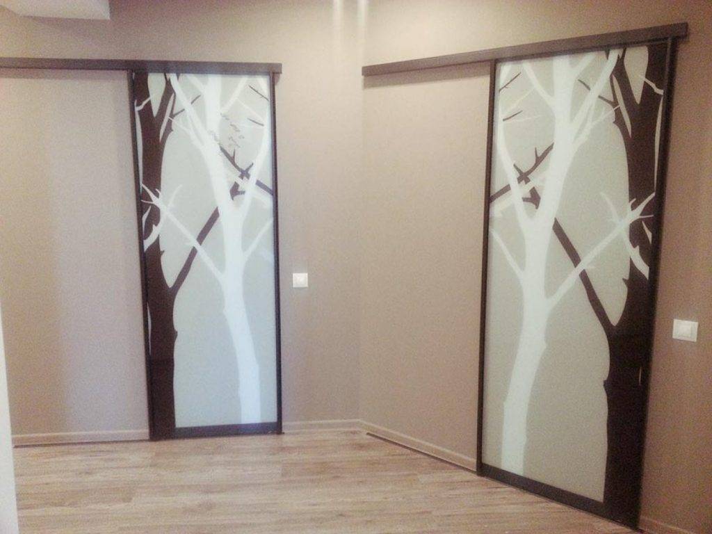 Ещё одна важная особенность стеклянных или зеркальных дверей – широкий спектр различного декора, техники выполнения которого могут быть различными. Один из распространённых и доступных способов декорирования стеклянных дверей – наклеивание специальной плёнки.