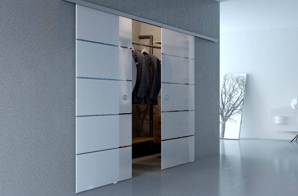 Такие раздвижные двери выполняются из стёкол и зеркал, обладающих большой толщиной и высокой прочностью. Они устанавливаются точно таким же образом, как и двери из дерева. С обратной стороны полотна имеется специальная плёнка, которая удержит осколки полотна в том случае, если оно будет разбито. Зеркальные и стеклянные двери являются очень востребованными, что позволяет говорить об их универсальности.