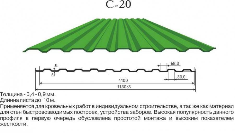 - размеры профлиста будут зависеть от общей площади, где выполняется кровля. Перед покупкой составьте чертеж и попросите поставщика нарезать металлопрокат;