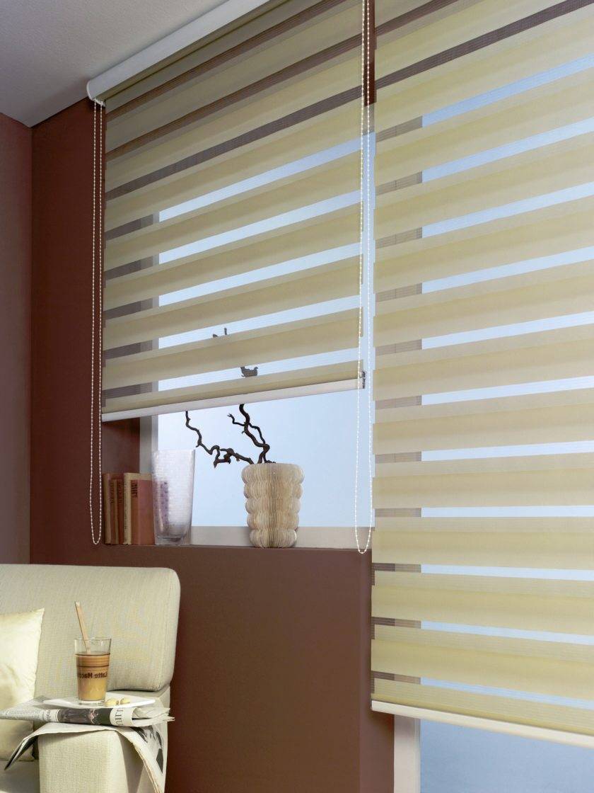 При необходимости затемнения помещения одно из полотен опускается, а другое поднимается, перекрывая первое и создавая эффект темного пространства. Данная конструкция путем образования тонких зазоров между материями позволяет создать полумрак в дневное время.